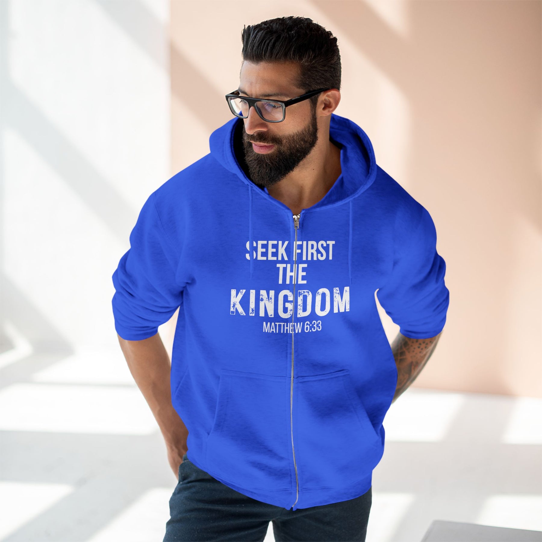 Kingdom First Zip Hoodie – "Seek First the Kingdom" Matthew 6:33 Christian Hoodie